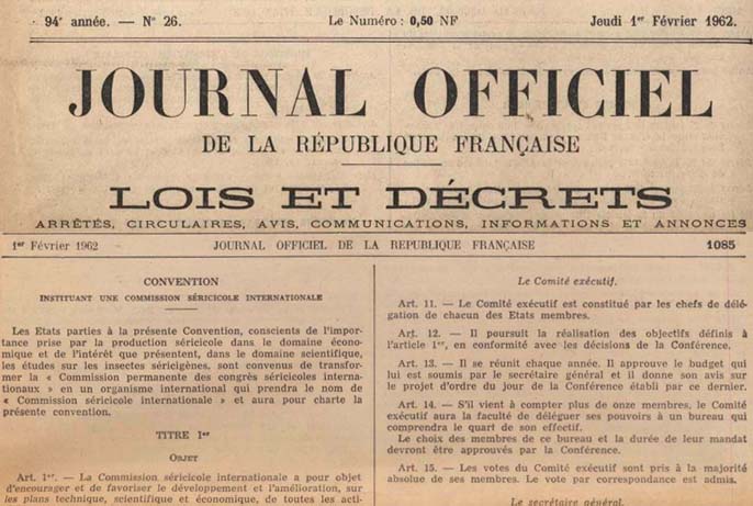 The text of the Convention, which later adopted as the Statute, was formulated by the lawyers of the Ministry of Foreign Affairs, France, and presented for signature to the countries from 1 July, 1957 to 31 December, 1957. Following this, the International Sericultural Commission (ISC) was institutionalized on 8th August 1960, after ratification of the Instituting Convention, initially by four Member Countries namely; France, India, Romania and Yugoslavia.