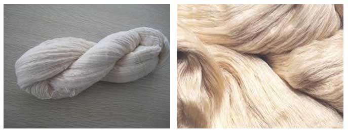 | The double cocoons are reeled by special technique and give thicker, uneven silk yarn which when woven makes an irregualr appearance to the fabric. This fabric yarn is highly prized among the fashion designers. | ![]() |